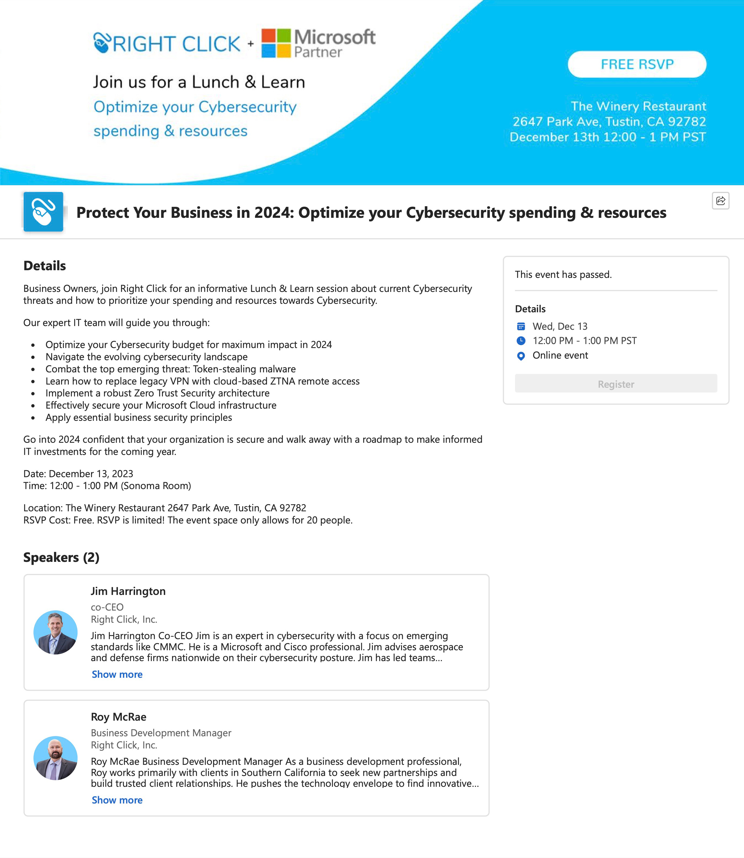 In-Person: Lunch & Learn at Winery.